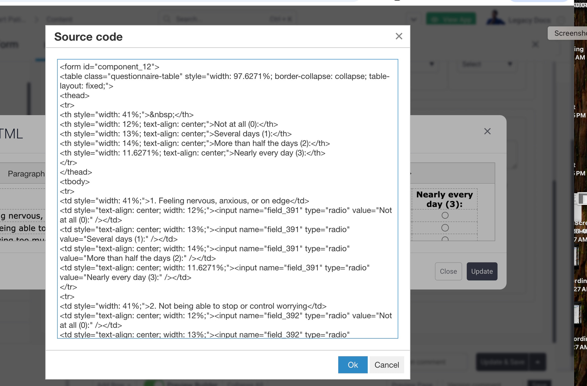 Hello, I tried to trying using the form fields int the table but , when I tried to hide the option lnline label the radio button became small. I dont want the option labels to be repeated on every row so I used the html code and tried to bind it to the table. Im not sure how to make it save the radio buttons from the html to the table. I tried to follow this but am completely lost. Ive been trying and you the resources since Friday. Any help would be great. Thanks