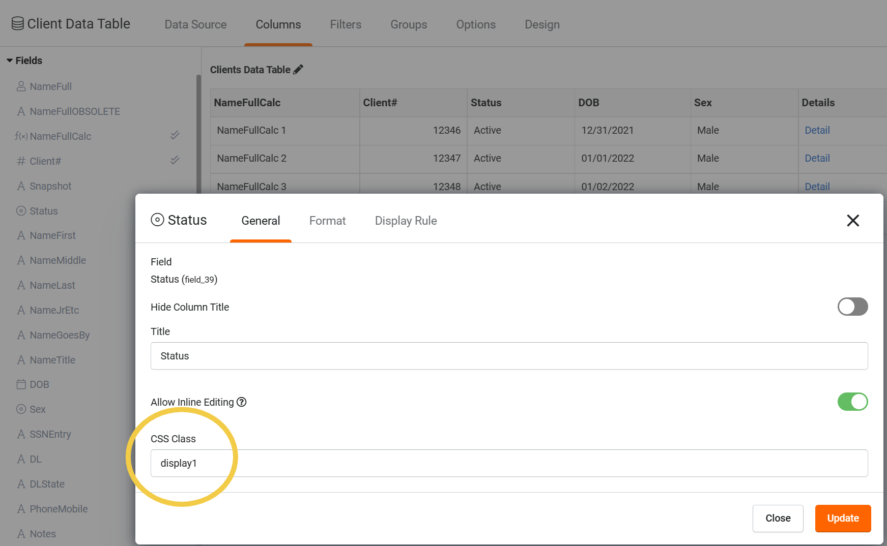 - Is it possible to configure a grid so that it has multiple TABS that show different columns? I’d of course keep the primary field on each of these tabs, but it would be helpful if there could be a tab showing say, contact fields, identity fields (name, SSN, drivers license, DOB, citizenship etc), another tab for data relating to the person’s status in the lawsuit (case filed date, court filing number, etc), and more. As I said, there would be one or two columns in common (maybe full name and status) but the other fields would change by group with each tab.