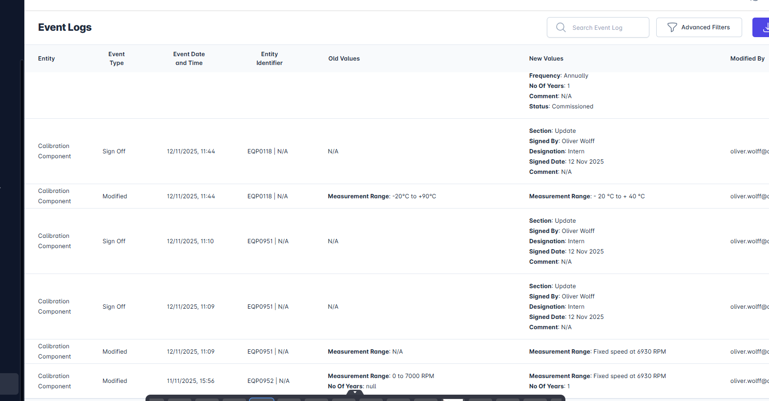 - Field Name, Old Value, New Value, Date/Time, Login User