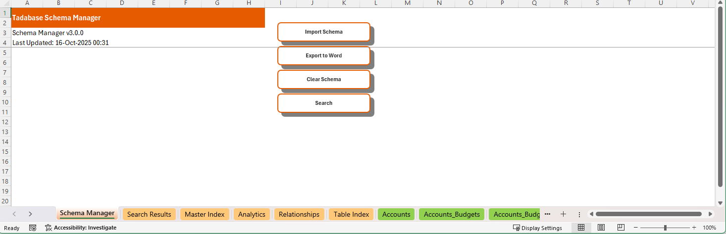 I’ve put together an Excel-based tool that connects to the Tadabase API and pulls down your app’s full schema into a set of readable tables. It builds one worksheet per Tadabase table, plus a master index, relationships map, and simple analytics view.