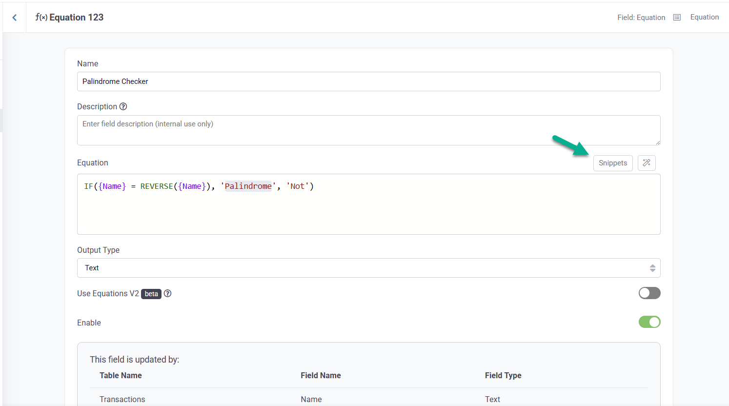 We have added a powerful new feature to the Equation field: Equation Snippets. This tool helps you build advanced formulas quickly by automatically inserting prebuilt equation patterns.