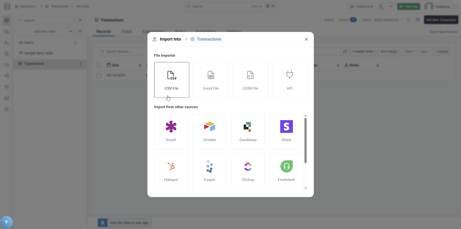 Some of the most powerful features include the ability to import from nearly any API, save that configuration, and trigger it on demand. For example, you could import all transactions from Stripe daily and automatically match each transaction to a specific customer. ![]()